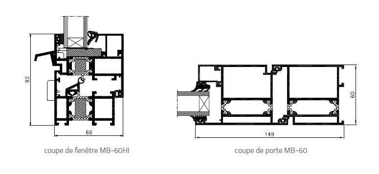 Le MB-60 est également à la base de mB-60Ef dédié au mur-rideau mB-SR50 EfEKt et de la porte économique mB-60E. La plupart de ces solutions existent en version HI – avec une meilleure isolation thermique.