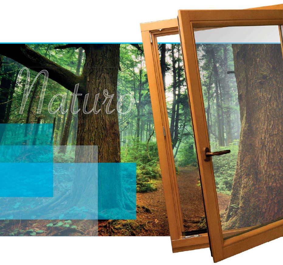 La menuiserie Naturo est fabriquée de différents types de bois: pin, acajou meranti, mélèze, chêne – collé de trois ou quatre couches qui gardent des structures bois d’orientation alternée, ce qui garantit la stabilité et la solidité de la structure.